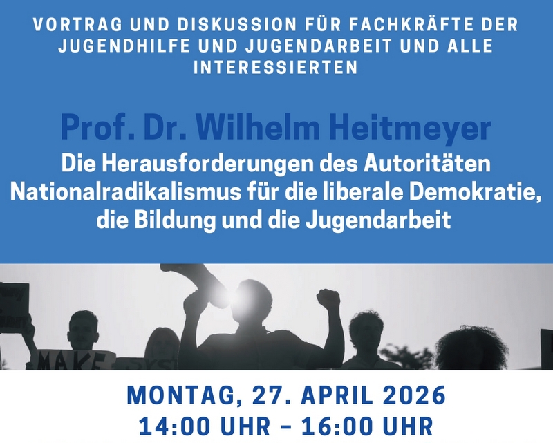 Vortrag und Diskussion: Die Herausforderungen des Autoritären Nationalradikalismus für die liberale Demokratie, die Bildung und die Jugendarbeit Am Montag, den 27. April 2026, lädt ein breites Bündnis Mannheimer Institutionen zu einem Fachvortrag mit anschließender Diskussion in den Bürgersaal des Nachbarschaftshaus Rheinau ein. Referent ist Prof. Dr. Wilhelm Heitmeyer, langjähriger Professor für Erziehungswissenschaft an der Universität […]