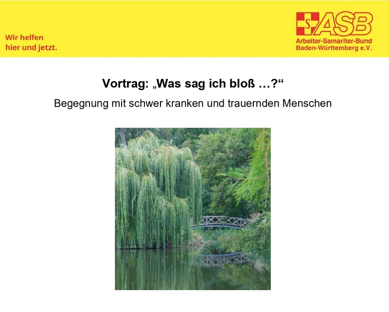 Im Rahmen des Themenmonats "Sterben, Tod und Trauer" lädt der ASB zu einem Vortrag in die Stadtbibliothek - Zweigstelle Rheinau ein. Wenn wir schwerkranken Menschen oder trauernden Angehörigen begegnen, fühlen wir uns oft hilflos und überfordert. Gerne würden wir etwas Tröstendes sagen, doch uns fehlen die Worte. Alles scheint schal und billig zu klingen. Wie […]
